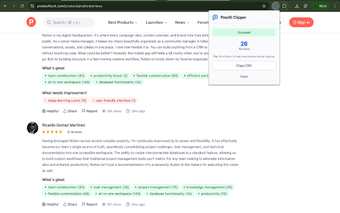 Proofli Clipper เป็นส่วนเสริมของ Chrome ที่ออกแบบมาเพื่อทำให้กระบวนการรวบรวมและจัดการรีวิวจากแพลตฟอร์มต่างๆ ง่ายขึ้น เครื่องมือนี้ฟรีช่วยให้ผู้ใช้สามารถตัดรีวิวโดยตรงจาก Google Maps, Trustpilot และ Product Hunt และส่งออกไปยังแดชบอร์ด Proofli ของพวกเขาได้อย่างราบรื่น ด้วยอินเทอร์เฟซที่ใช้งานง่าย ช่วยให้การรวบรวมข้อเสนอแนะแสนสะดวกและเพิ่มความสามารถของผู้ใช้ในการจัดระเบียบและวิเคราะห์ข้อมูลเชิงลึกจากลูกค้าได้อย่างมีประสิทธิภาพ.